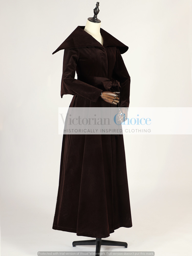 - 1 vintage trench / flapper coat in dark chocolate color (velvet and poly satin)