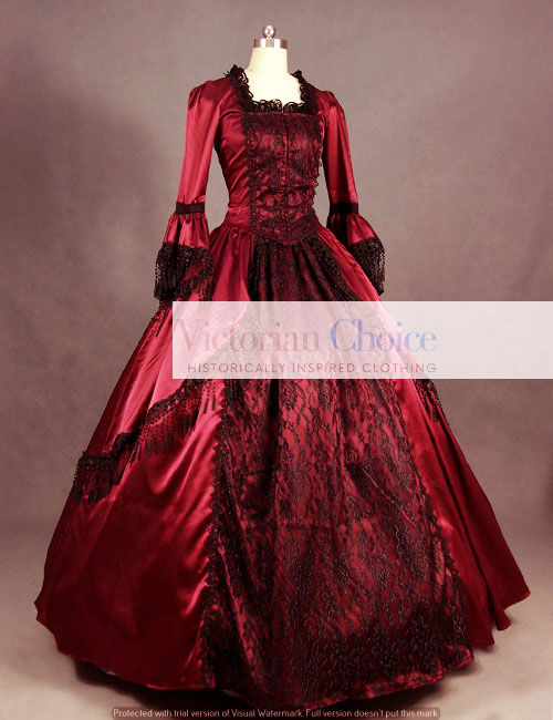 - 1 Colonial / Marie Antoinette style overdress (poly satin and lace)